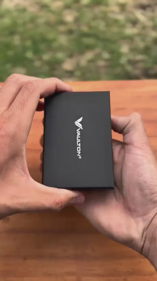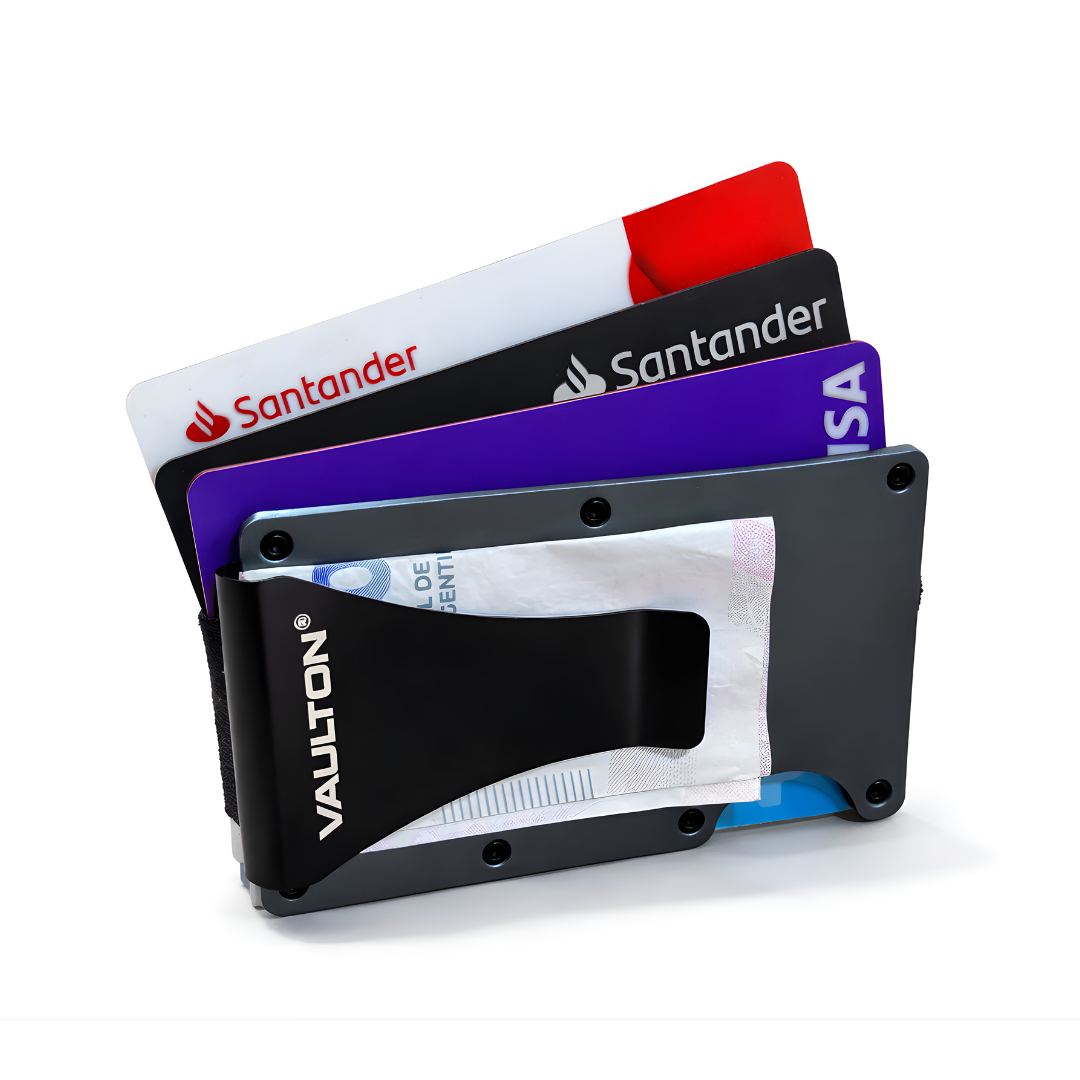 VAULTON® combina un diseño minimalista con protección RFID y materiales de carbono ultra resistentes, eliminando el problema del bulto y el desgaste.